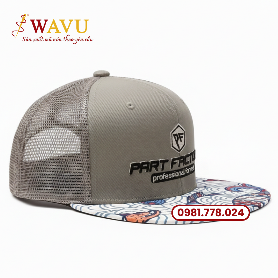 Thay vì trung thành với những kiểu mũ truyền thống, xu hướng phụ kiện hiện nay đang chứng kiến sự trỗi dậy của những thiết kế mang tính thể nghiệm cao. Không còn gò bó trong những khuôn mẫu đơn sắc, dịch vụ may nón snapback phối lưới tại Wavu đang mở ra một kỷ nguyên mới cho các tín đồ thời trang với điểm nhấn là kỹ thuật may nón in hoa văn trực tiếp lên lưỡi trai. Đây chính là giải pháp hoàn hảo để các thương hiệu tạo nên một cú hích thị giác mạnh mẽ, giúp sản phẩm không chỉ là vật che nắng mà còn là một tác phẩm nghệ thuật di động.